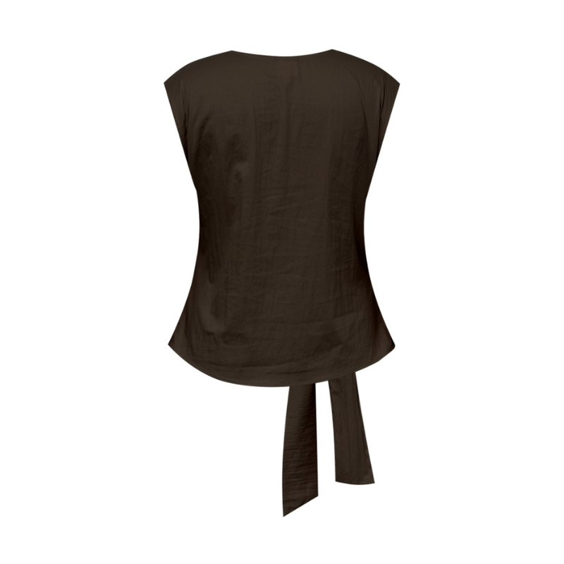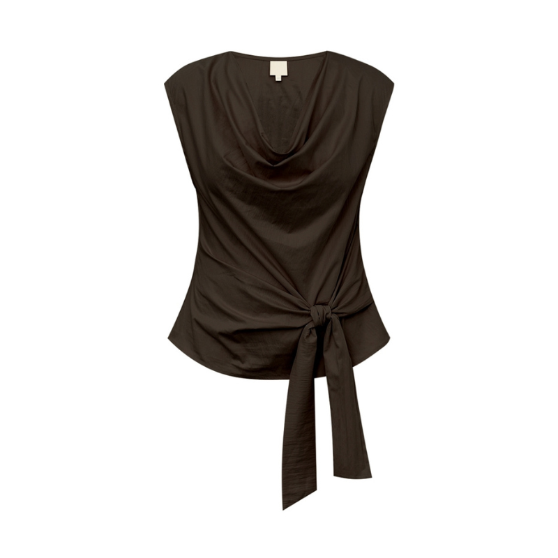 Denne draperede top til dame er designet med fine bindebånd og et smukt fald, der på enkel vis fremhæver den kvindelige silhuet. En elegant top med et tidløst udtryk, som både er behagelig at have på og samtidig utrolig flatterende.