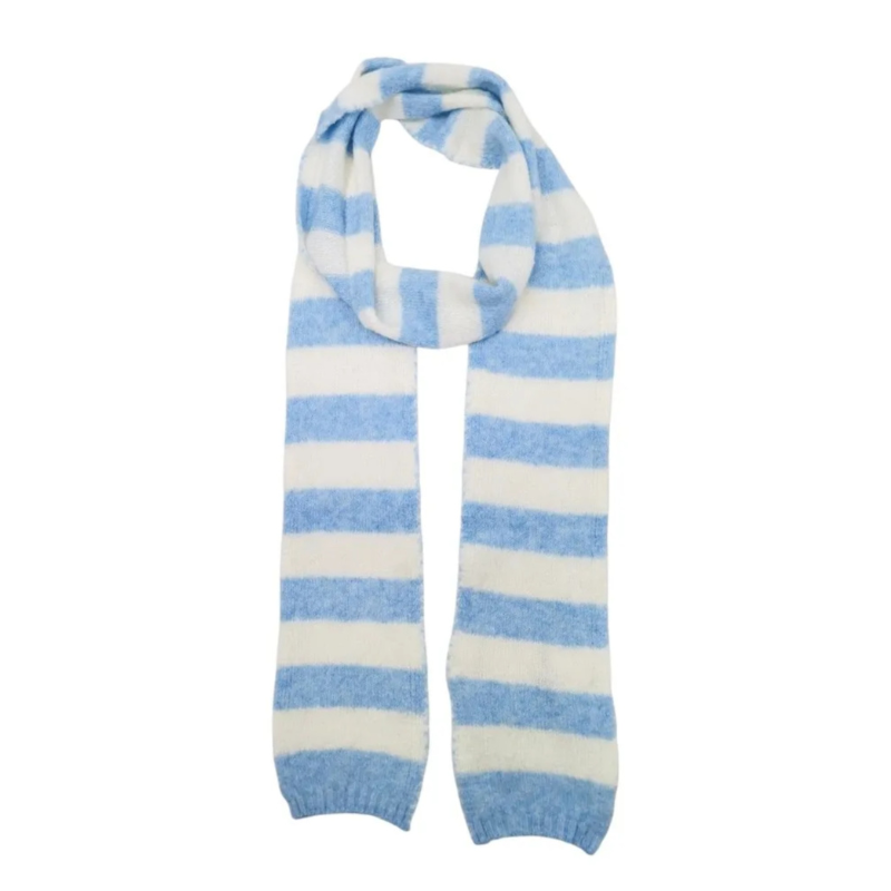 Silla tørklæde fra Marta er et blødt finstrikket tørklæde med blå og hvide striber. Perfekt til at pifte dit outfit op og holde dig varm.  Fås også i orange/lyserød striber.