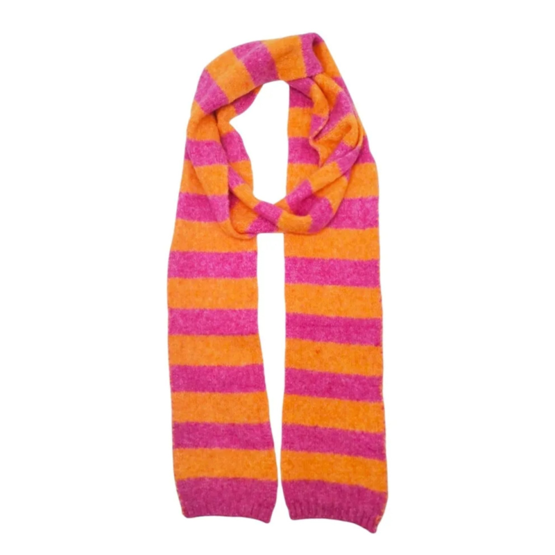 Silla tørklæde fra Marta er et blødt finstrikket tørklæde med orange og lyserøde striber. Perfekt til at pifte dit outfit op og holde dig varm.  Fås også i blå/hvid striber.
