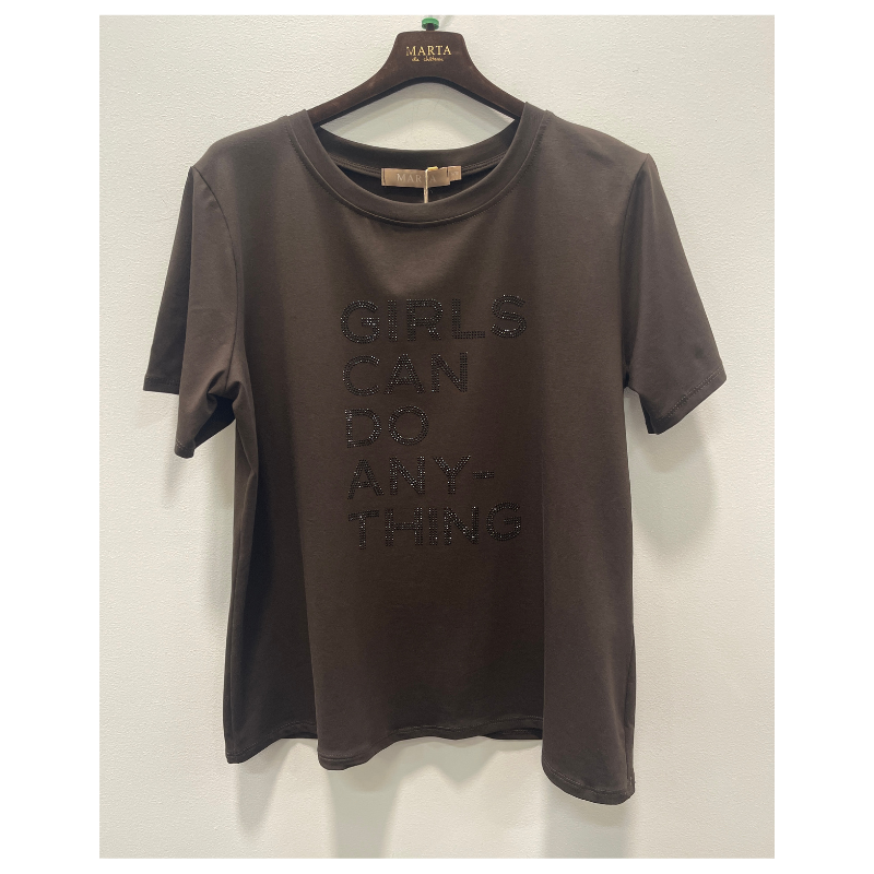 Sunshine t-shirt fra Marta er en fin og simpel t-shirt med tekst foran i små sten. Fås også i sort.