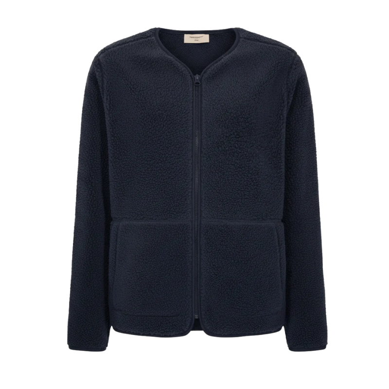 Teddy jakke fra Freequent i en blød teddybear-kvalitet. Jakken er enkel i modellen med lynlåslukning, V-udskæring, lange ærmer, sidelommer samt en regulær pasform.