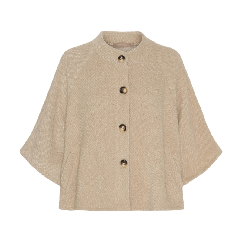 Super fin Thunder jakke fra Marta du Chateau med trekvartlange ærmer. En blød og lækker indendørs jakke i en fin beige farve. Jakken har smukke gennemgående knapper og lommer i siden. Style den med et par jeans og en mesh-bluse for et smart look.