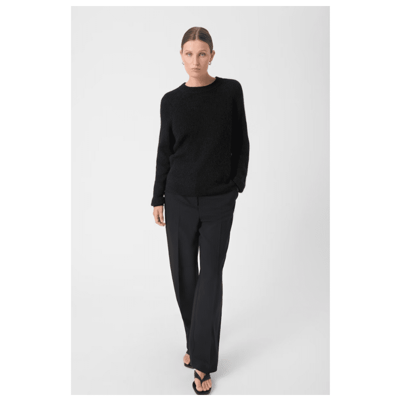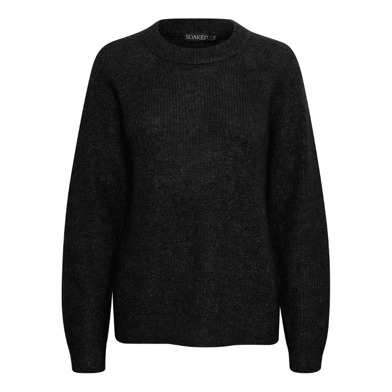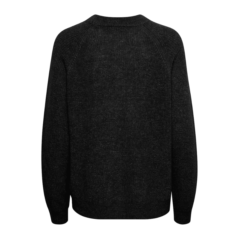 Sort striktrøje med rund hals samt lange ærmer. Striktrøjen har en løs pasform.