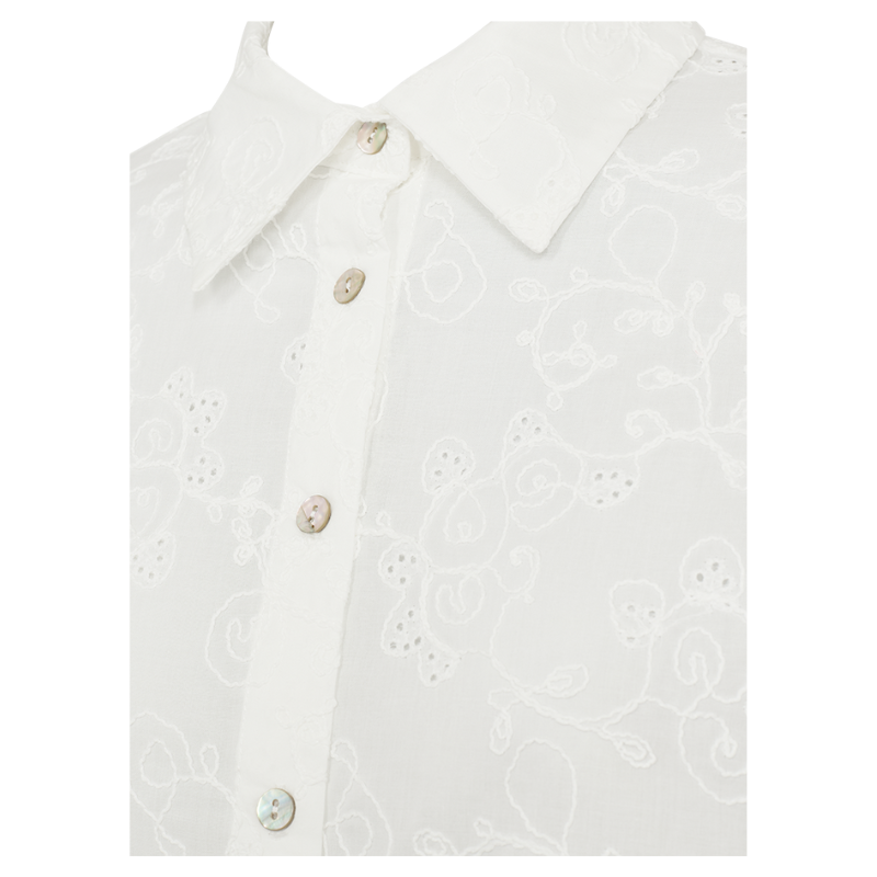 Uniquia Skjorte fra Freequent er en smuk skjorte med et sødt broderet mønster.