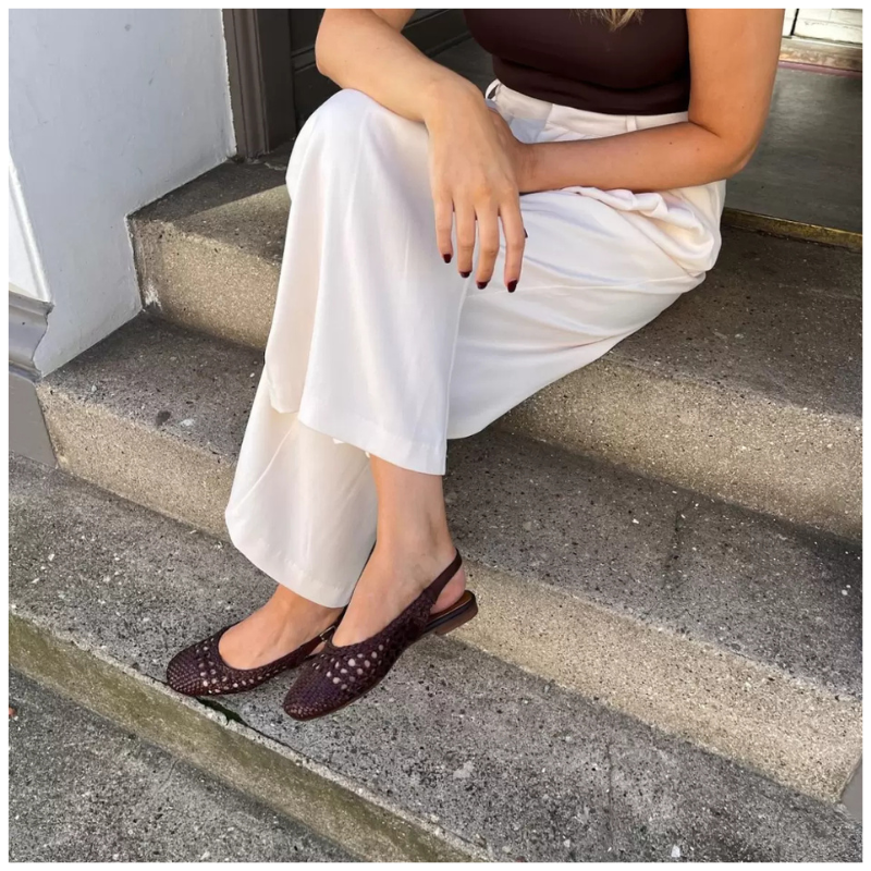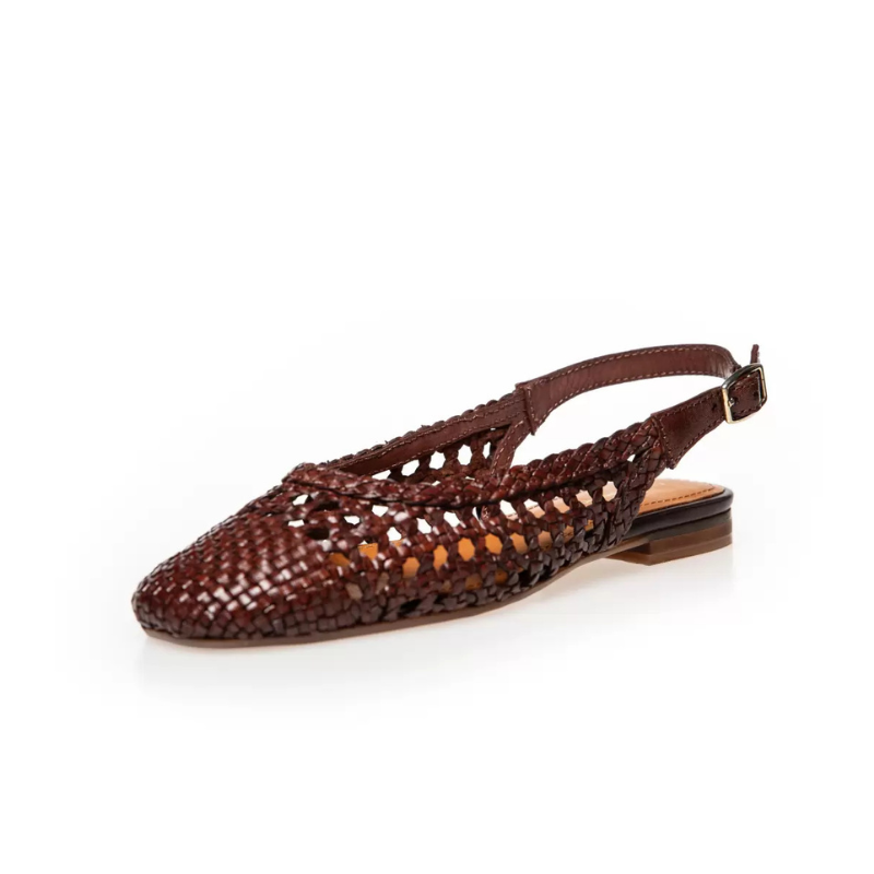 Et par smukke flet ballerinasko i mørkebrun. Det flettede skind skaber et smukt spil i lyset, mens slingback-remmen giver en sikker og behagelig pasform. Med den lette TPR-sål og den bløde foam-indersål får du både stil og komfort i ét.