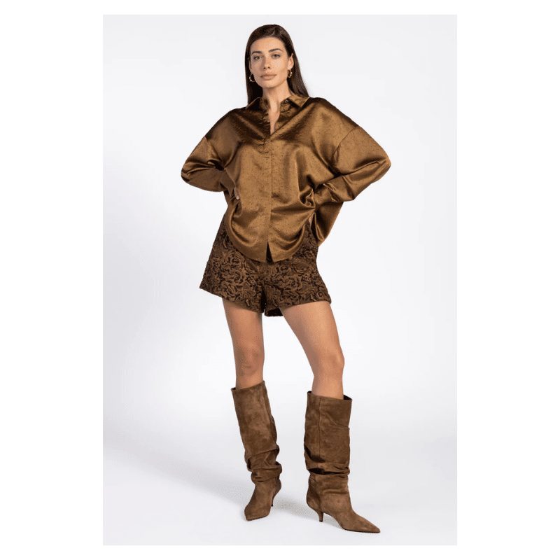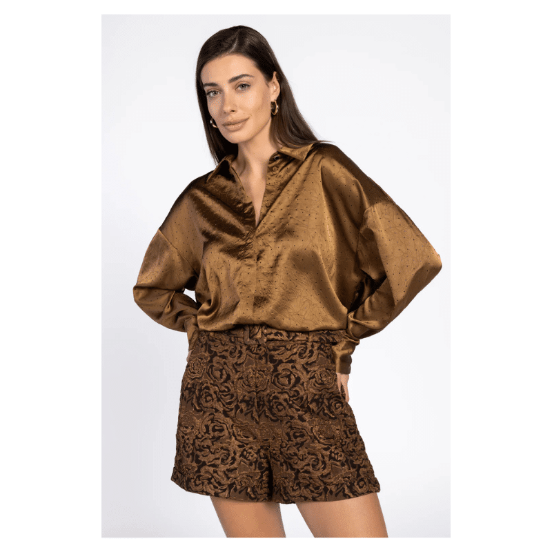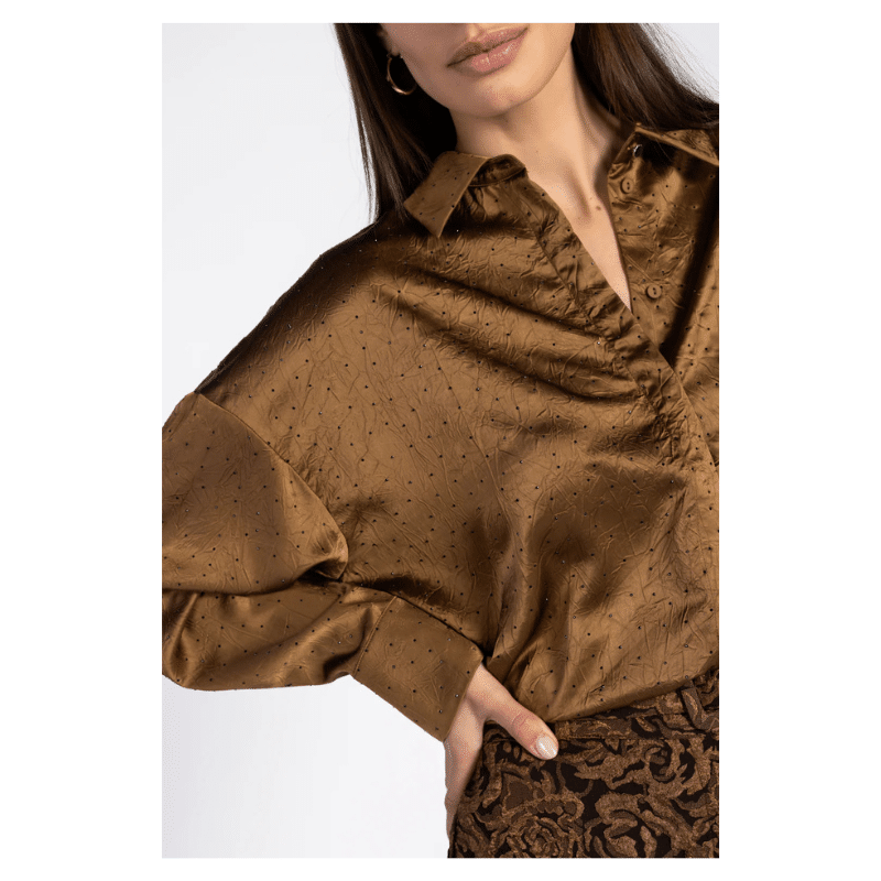 Violet skjorte fra Aaiko er en fin skjorte i en eksklusiv kvalitet. Skjorten er i en let struktureret stof med fine glimmer prikker overalt, der giver et feminint look.