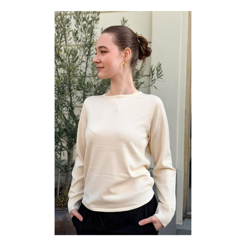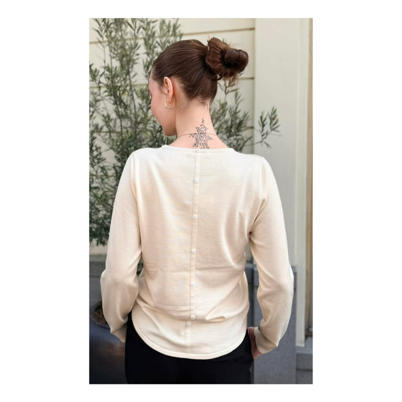 Wanda bluse fra KOPENHAKEN. Lækker blød finstrikket bluse med sød detalje på ryggen med knapper.