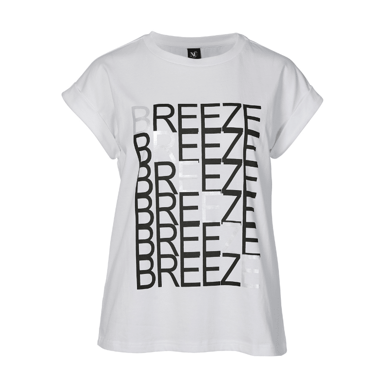 Smart hvid t-shirt med “BREEZE” print. T-shirten er simpel med korte ærmer ærmer og en normal pasform.
